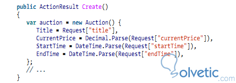 Esto que explicamos es lo que se llama model binding algo que se traduciría como unión al modelo. Veamos ahora en la siguiente imagen como podemos crear una acción que trabaje con el request de forma tradicional: