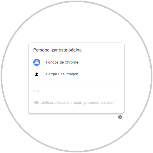 Para realizar esto, debemos pulsar en el icono de engranaje ubicado en la parte inferior derecha y será desplegado lo siguiente. Allí contamos con la opción de usar los fondos disponibles de Google Chrome o bien cargar una imagen personalizada.