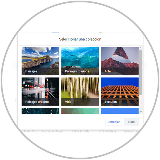 Si pulsamos en la opción Fondos de Chrome veremos lo siguiente: