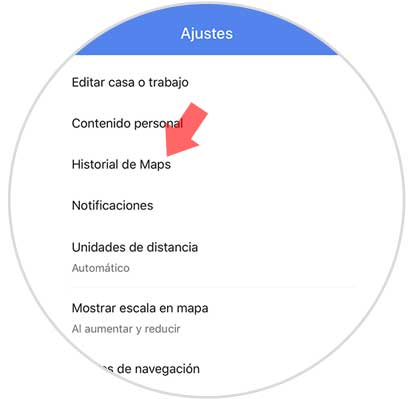 Una vez dentro de los ajustes, verás una opción que pone “Historial de Maps”. Debes pulsar sobre ella.