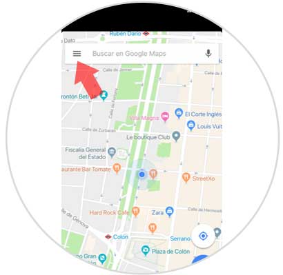 Lo primero de todo es entrar en la App de Google Maps. Una vez aquí, debes desplegar el menú lateral de las tres rayitas situado en la esquina superior izquierda.