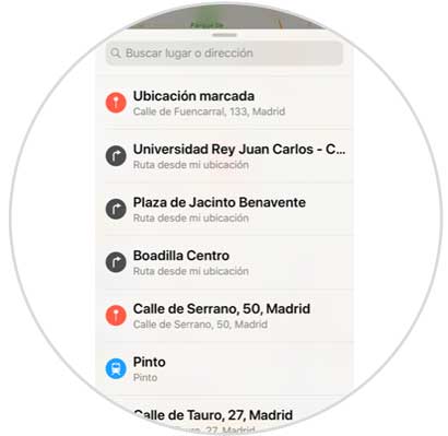 Lo primero que debes hacer es entrar en “Mapas”. Veremos que en la parte inferior aparecen todas las direcciones que hemos utilizado o buscado dentro de la App. Desplazas hacia arriba las direcciones para ver mejor todas direcciones que has utilizado y comprobar cuales de ellas quieres borrar.