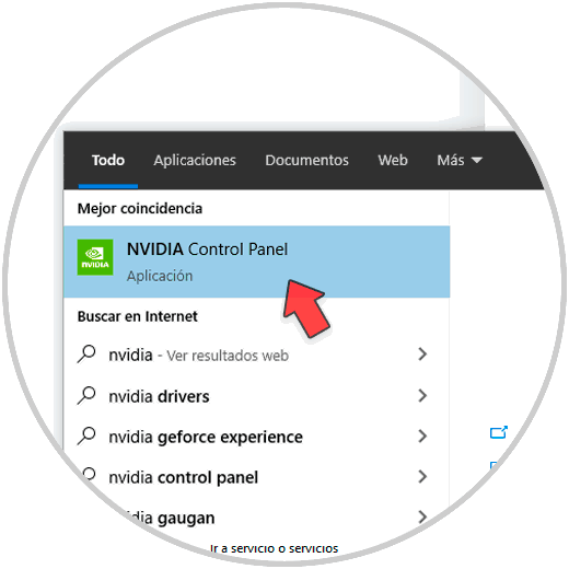 Ve al menú de búsqueda de Windows 10 y escribe NVIDIA. verás que te aparece la opción del panel de control, pulsa sobre él para abrirlo.
