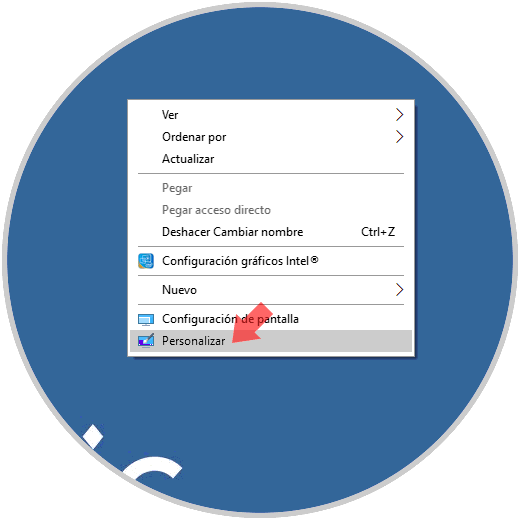 Para esto daremos de nuevo clic derecho sobre el escritorio y esta vez seleccionamos la opción "Personalizar":