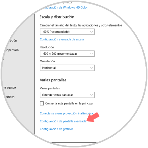 Allí mismo será posible dar clic en la línea "Configuración de pantalla avanzada"