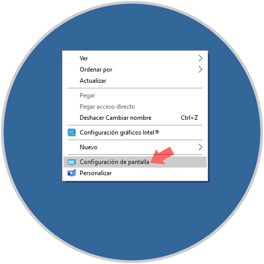 Para esto, daremos clic derecho en algún lugar del escritorio y seleccionamos la opción "Configuración de pantalla":