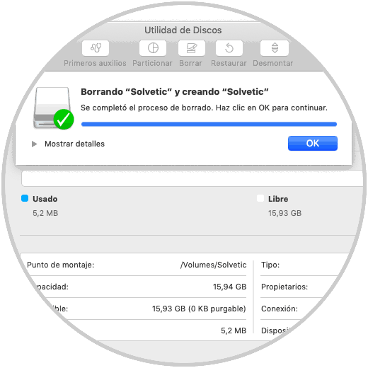 Al finalizar esto, se desplegará el siguiente mensaje. Así el medio USB estará listo para ser usado y crear el medio de arranque de macOS Mojave.