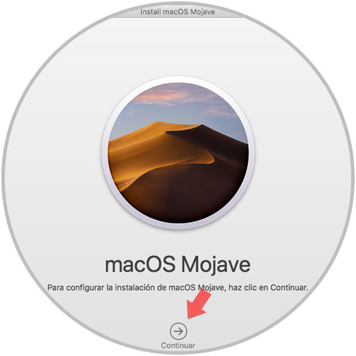 Luego de este proceso se desplegará el asistente de instalación de macOS Mojave. Allí damos clic en el botón "Continuar" y seguimos los pasos del asistente de instalación.