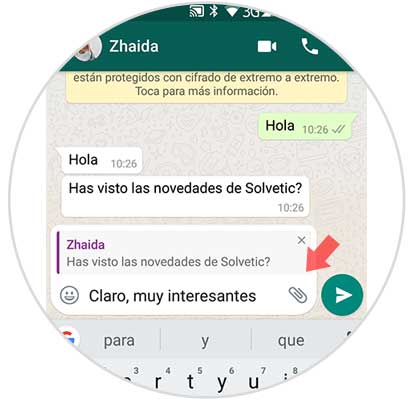 Una vez que hayas contestado, verás como aparece en la conversación como si hubieras citado el mensaje al estilo tradicional.