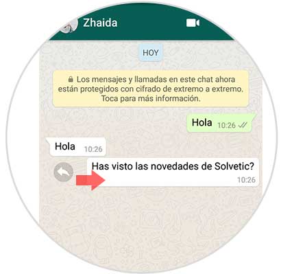 A continuación, tienes que desplazar el mensaje de izquierda a derecha para poder citarlo y contestarlo.