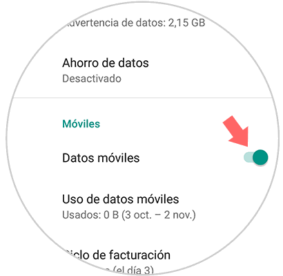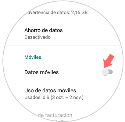 Veremos que aparece una pestaña deslizable en el apartado de móviles la cual indica “Datos móviles” Debemos desplazarla de derecha a izquierda para que quede desactivada.