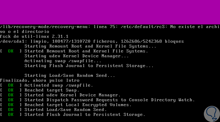 3. Cómo ejecutar fsck en modo rescate