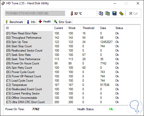DiskCheckup despliega los valores actuales de los atributos SMART, junto con el valor Threshold de ese atributo, así, si un atributo cae por debajo de su umbral, el disco no puede garantizar que cumplirá con las especificaciones en el futuro.