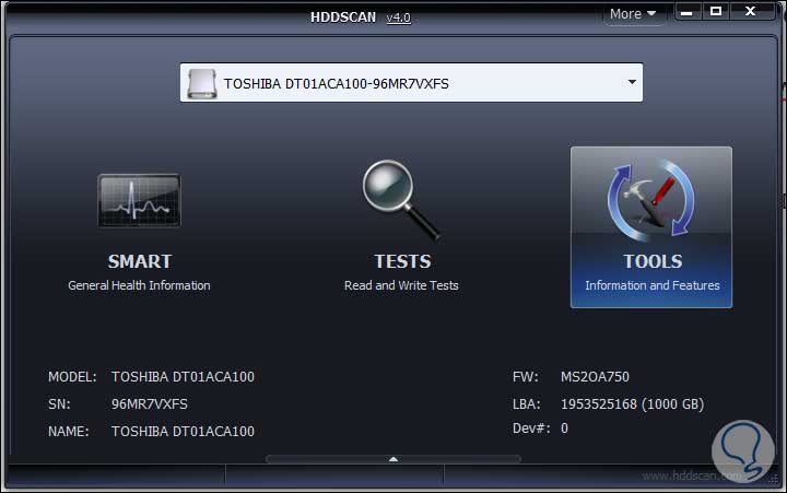HDDScan es una aplicación gratuita la cual fue desarrollada para realizar un diagnóstico de discos duros, pero en la cual también se admiten servidores de matrices RAID, unidades Flash USB y SSD. HDDScan puede hacer pruebas al dispositivo de almacenamiento con el fin de detectar errores (bloques defectuosos y sectores defectuosos), mostrar los atributos S.M.A.R.T. y editar parámetros de HDD como AAM, APM.