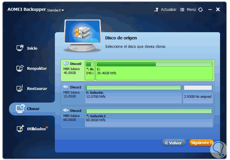 Una vez definido esto pulsamos en "Siguiente" y ahora debemos definir el disco de destino, es decir, donde se clonará el disco: