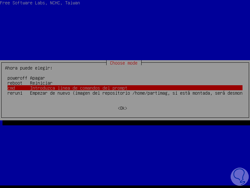 Seleccionamos la primera opción y pulsamos "Enter" y ahora definimos la acción a ejecutar cuando el proceso haya sido finalizado (Apagar, reiniciar o la posibilidad de elegir al final):
