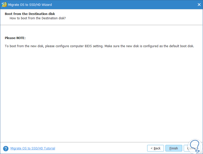 Aparecerá un nuevo aviso, que una vez clonado, se debe sustituir manualmente el disco del equipo y si es necesario ajustarlo en la BIOS.