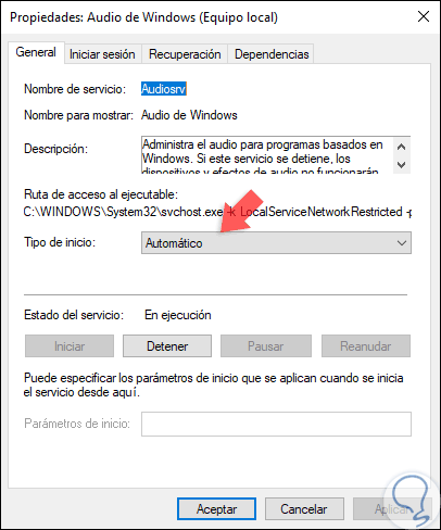 2. Solucionar error icono de volumen usando Reiniciar el servicio de audio Windows 10