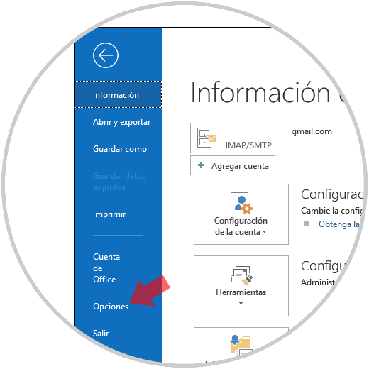 Para ello debemos ir al menú "Archivo" y allí seleccionar la sección "Opciones":