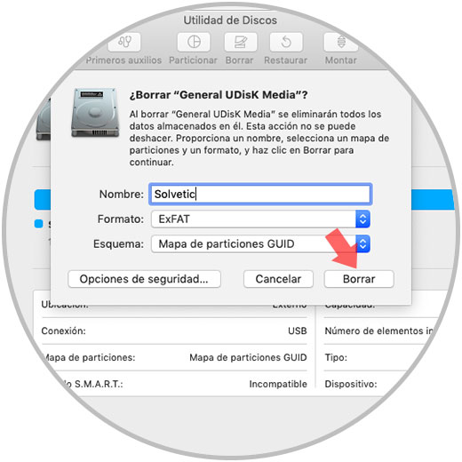 2. Formato del disco duro o medio USB externo en macOS Mojave