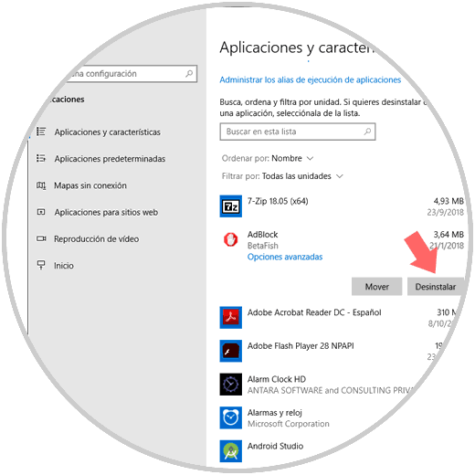 - Allí damos clic sobre el respectivo programa y pulsamos en el botón "Desinstalar".