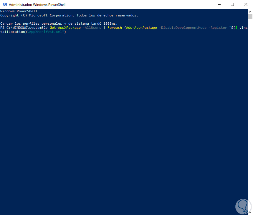 6. Registrar de nuevo el Administrador de tareas a través de PowerShell en Windows 10