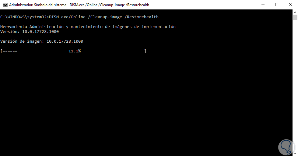 DISM (Deployment Image Servicing and Management) es una utilidad integrada de Windows 10, la cual permite hacer un análisis minucioso del estado de la imagen y proceder a su corrección si se detecta algún tipo de error.