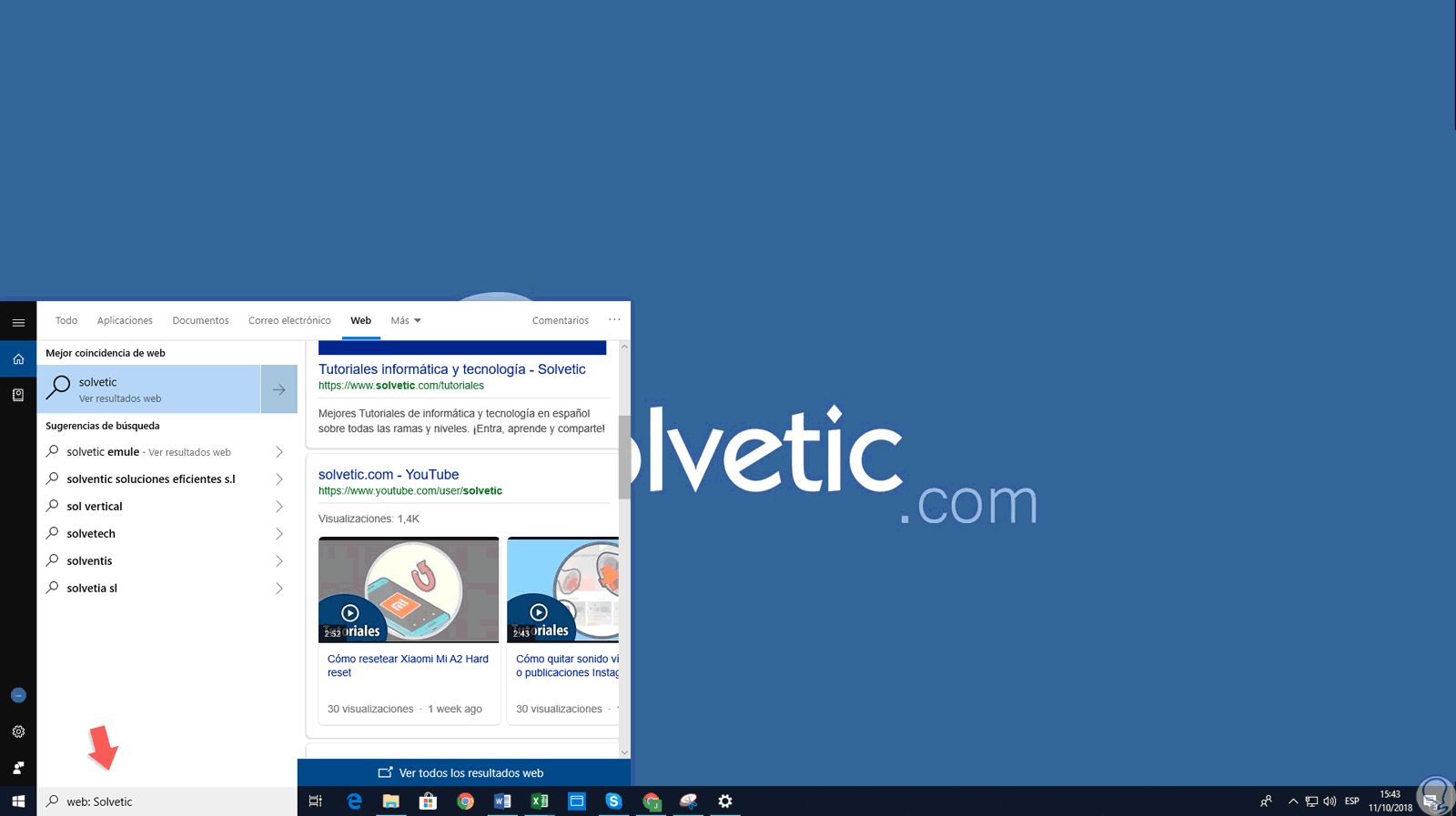 El cuadro de búsqueda en Windows 10 lo encontramos en la barra de tareas en el costado izquierdo y basta con ingresar el termino deseado para que se desplieguen todos los resultados asociados a dicho termino.