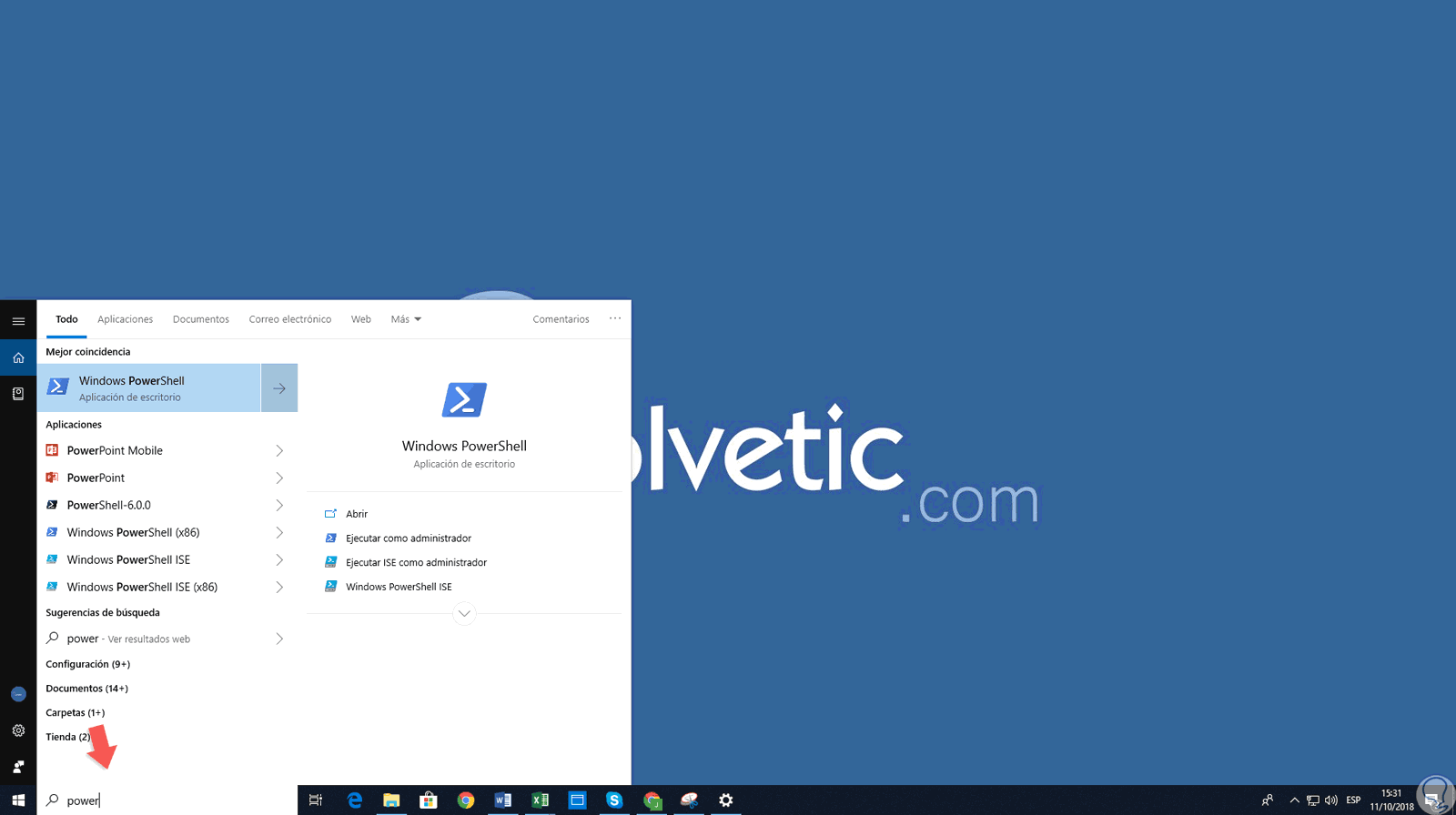 Otra opción útil para detectar elementos que buscamos en Windows 10 es usando nuestro teclado y el cuadro de búsqueda, en este caso basta con pulsar la tecla Windows y digitar las letras deseadas para que se desplieguen todos los resultados que contienen dichas letras. Después daremos clic en la opción correcta.