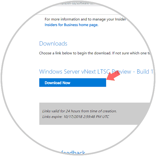 Estaremos listos para descargar la imagen ISO de Windows Server 2019: