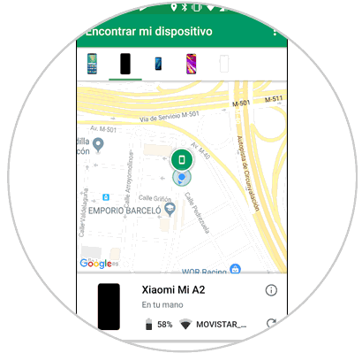 Entrarás en la aplicación. En la parte superior podrás seleccionar el terminal que quieres encontrar vinculado a esa cuenta de Gmail.