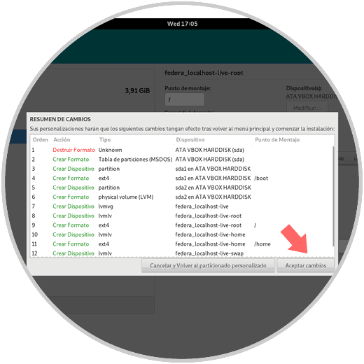 Configurado estos aspectos pulsamos en el botón Hecho y se desplegara la siguiente ventana donde veremos los cambios a realizar: