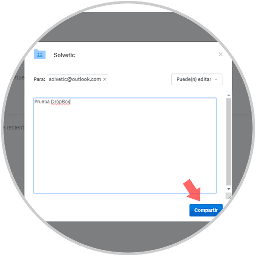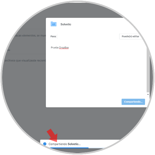 Definido esto pulsamos en el botón Compartir y veremos que se inicia el respectivo proceso: