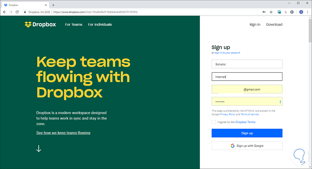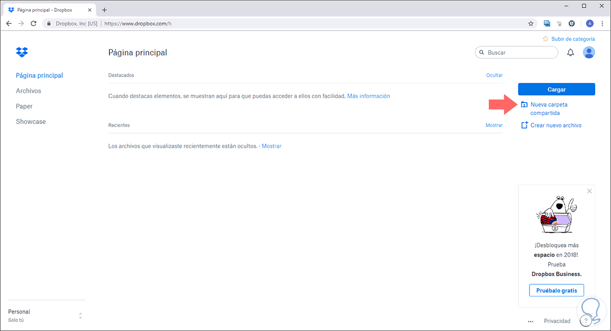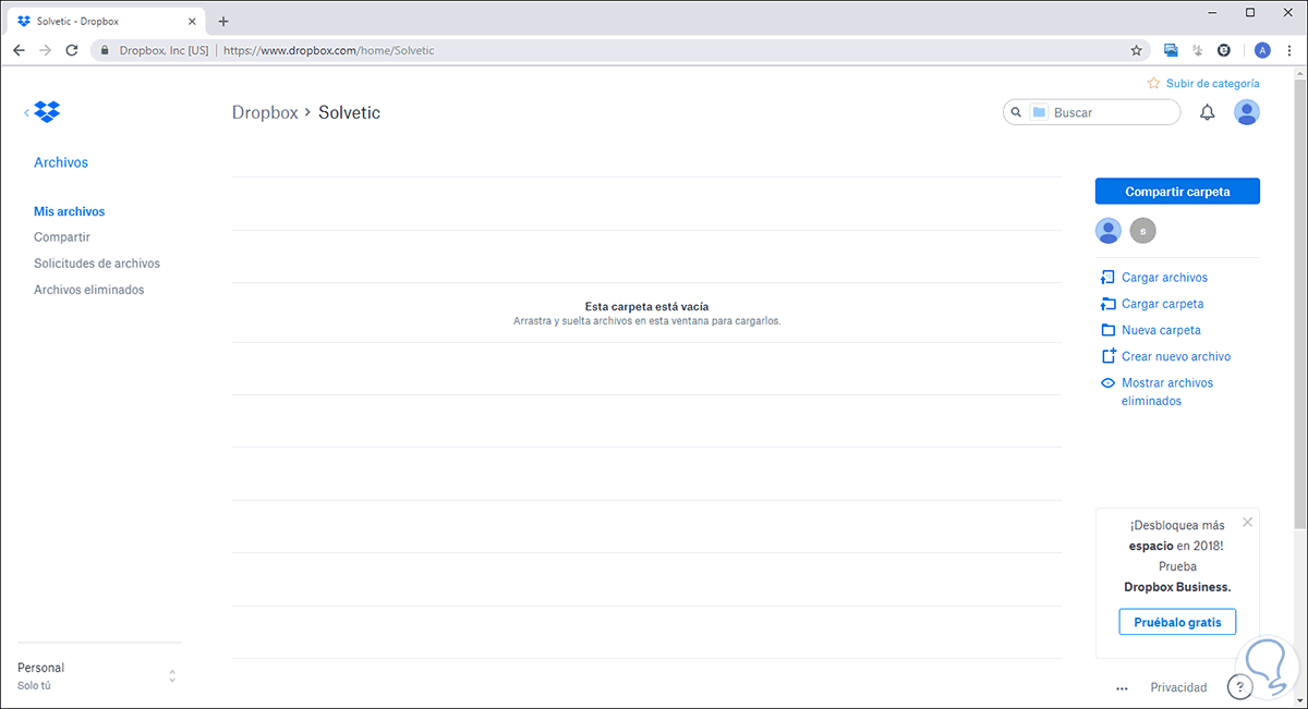 A continuación vamos al enlace mencionado de Dropbox y allí iniciaremos sesión con la segunda cuenta.