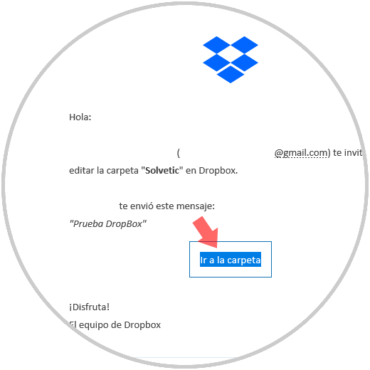 Luego de esto debemos ir al correo electrónico donde se ha recibido el enlace y pulsar en la opción Ir a la carpeta: