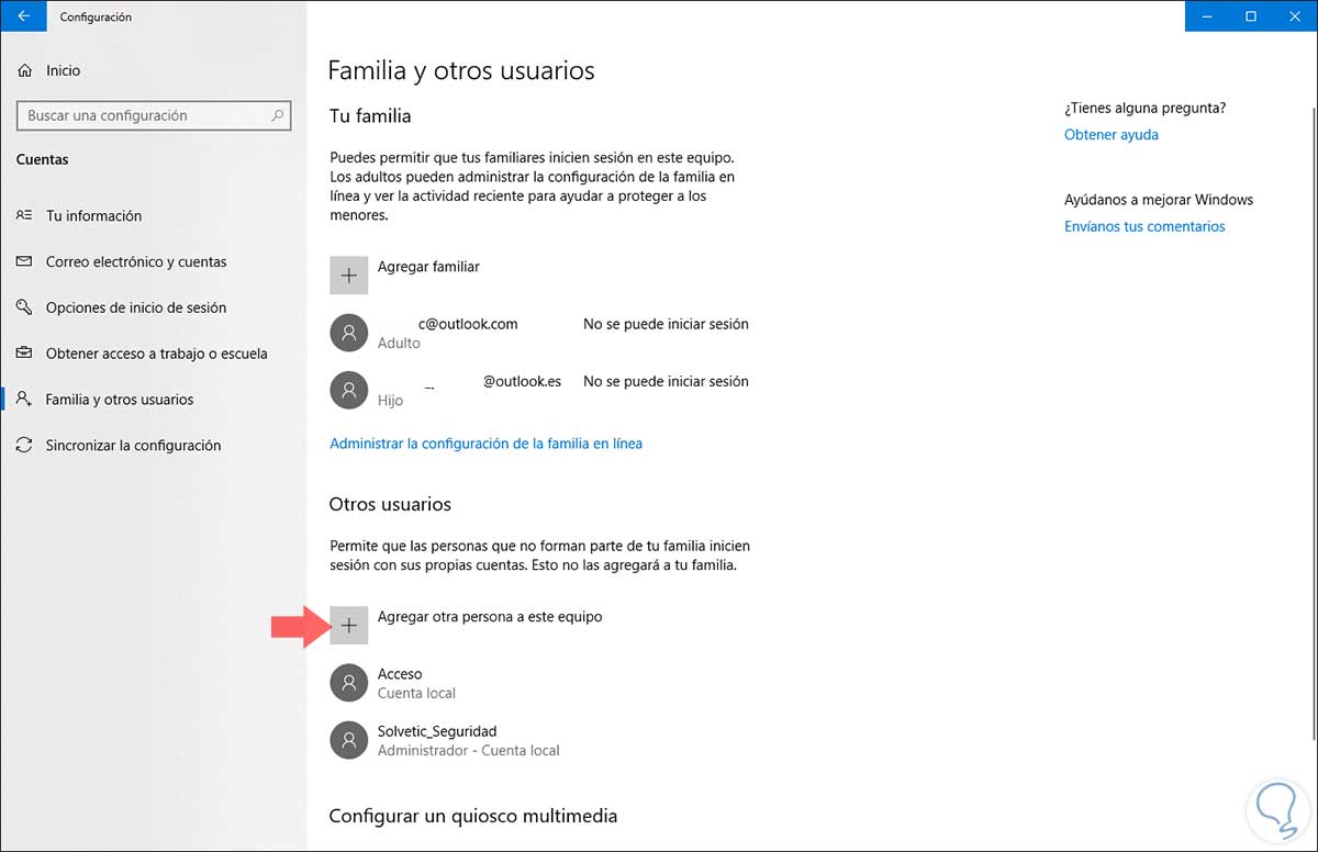 El primer paso a cumplir es tener dos cuentas de usuario en Windows 10 y esto lo podemos verificar en la ruta