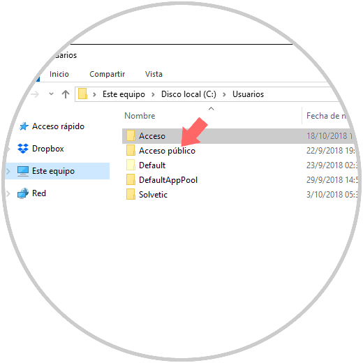 Una vez finalice, retornamos de nuevo a la cuenta principal y vamos al explorador de archivos y allí vamos a la ruta C:\Users\ y seleccionamos la segunda cuenta que esta disponible en Windows 10: