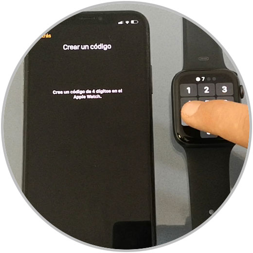 Ahora en la pantalla de tu móvil te pedirá introducir en tu Apple Watch un código de desbloqueo. Teclea el código en el teclado que aparecerá en la pantalla de tu reloj.