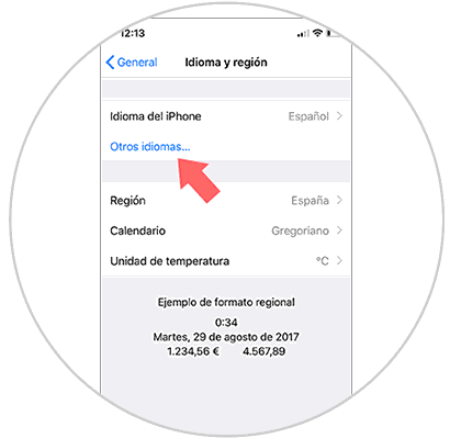 Ahora, pulsa en la opción “Otros idiomas” para desplegar la lista de opciones de idiomas disponibles en iPhone.