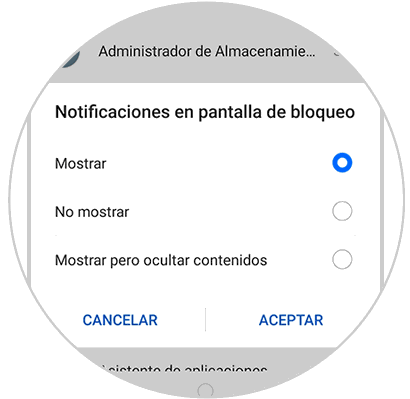 Verás que aparece en la parte superior una opción que pone "Notificaciones en pantalla de bloqueo". Debes entrar aquí.