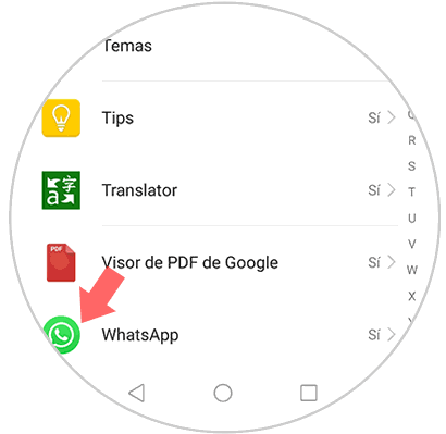 Vas a ver en la parte inferior un listado con todas las aplicaciones, busca en el listado la aplicación de la cual quieres desactivar las notificaciones en la pantalla de bloqueo (en este caso WhatsApp) y pulsa sobre ella.