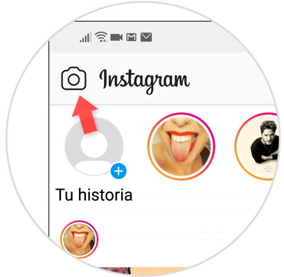 Pulsa el icono de la cámara para crear una nueva historia en Instagram.