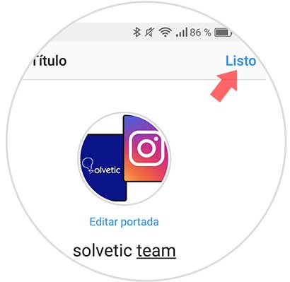 Escribe la palabra que quieres poner como portada y que va a englobar la temática dentro de esos destacados en Instagram. Pulsa en el icono de la flecha.