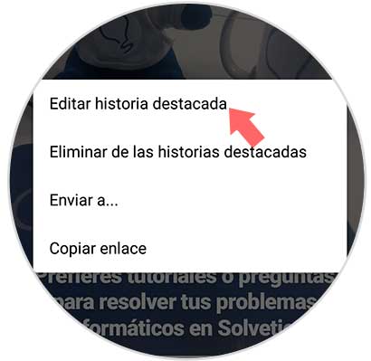 Una vez que se despliegue el menú, tienes que seleccionar la opción de "Editar historia destacada"