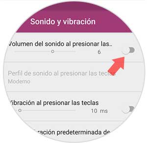 Por último vas a ver en la parte superior de la pantalla una pestaña en la que pone "Volumen del sonido al presionar las teclas" que podemos desactivar si queremos que estas dejen de sonar desplazando el slider hacia la izquierda.