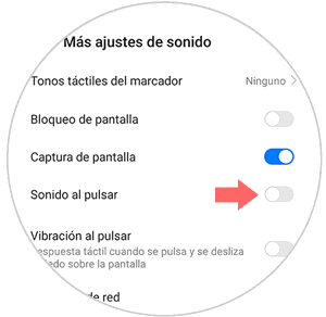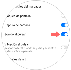 Vas a aparecer en una nueva pantalla en la que hay una pestaña que pone "Sonido al pulsar" si la desplazas hacia la derecha quedará activado el sonido y si la desplazas hacia la izquierda, el sonido quedará desactivado.