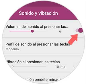 Finalmente vamos a ver una pestaña en la que pone "Volumen del sonido al presionar las teclas" que podemos desactivar si queremos que estas dejen de sonar.