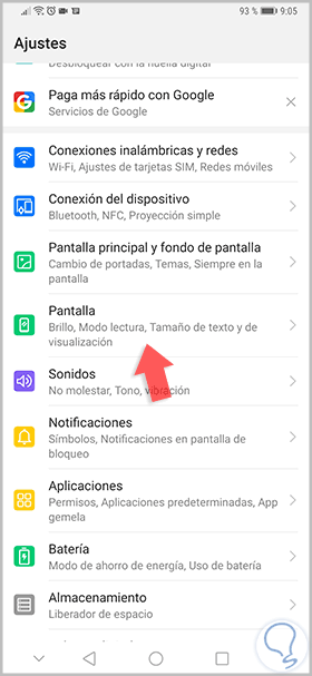 A continuación, entraremos en el apartado de “Pantalla” para ver sus características: