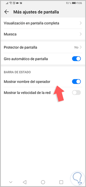 Dentro de estos ajustes avanzados encontramos una opción de “Mostrar nombre del operador”.
