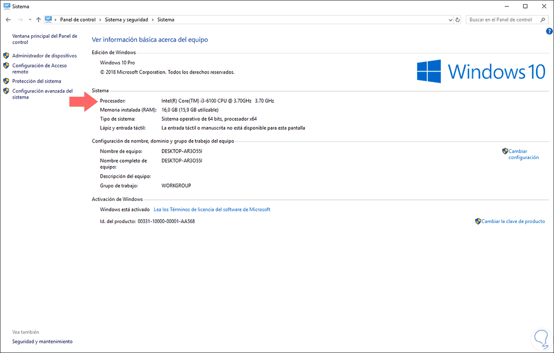 - Tipo del procesador.